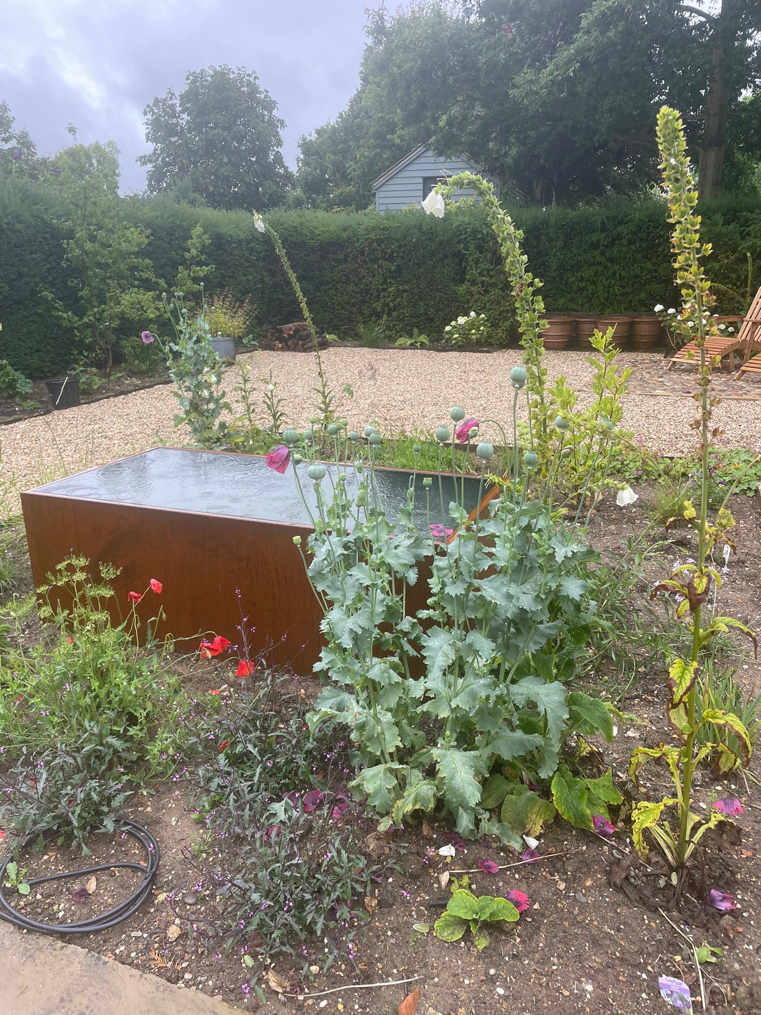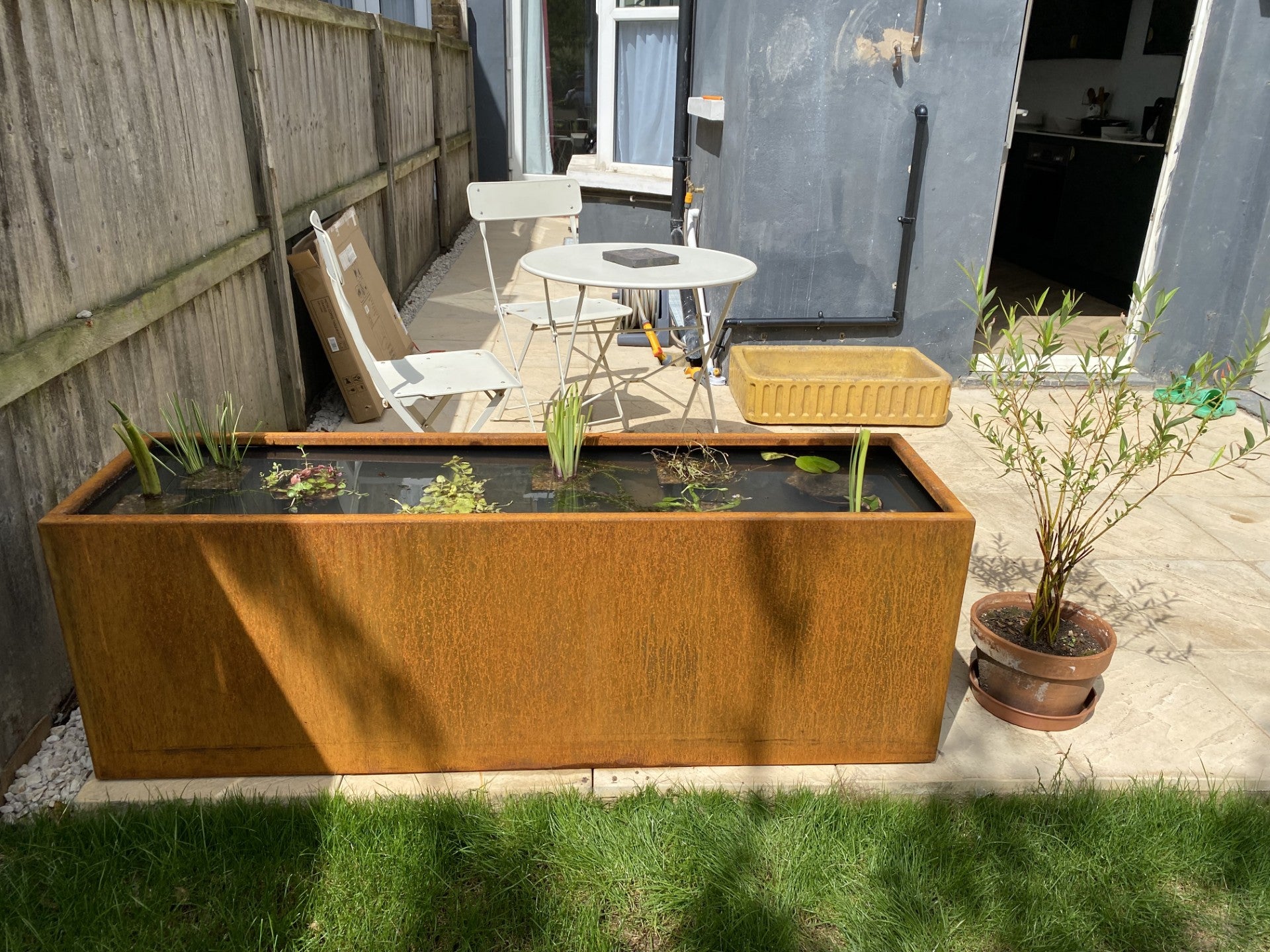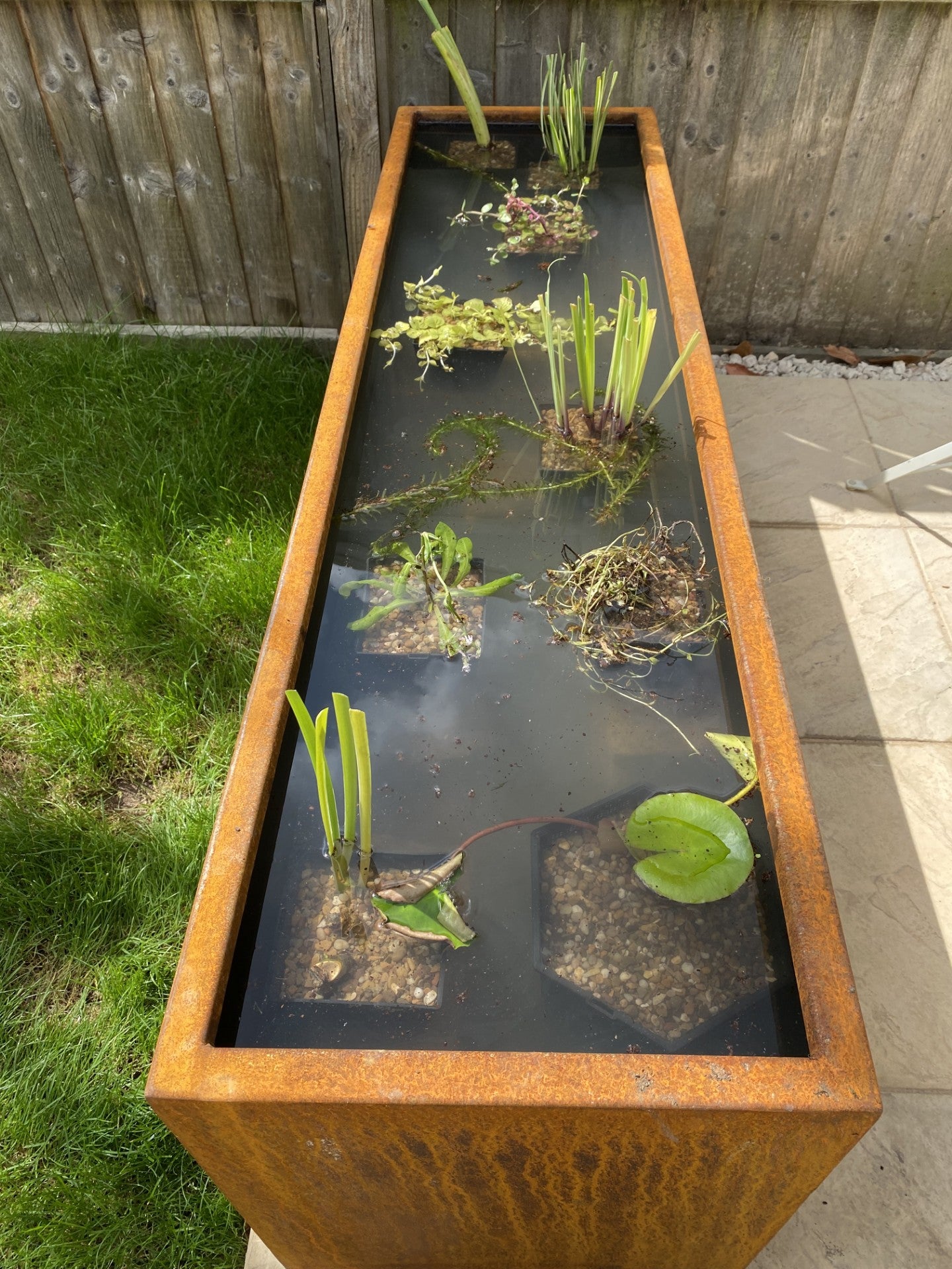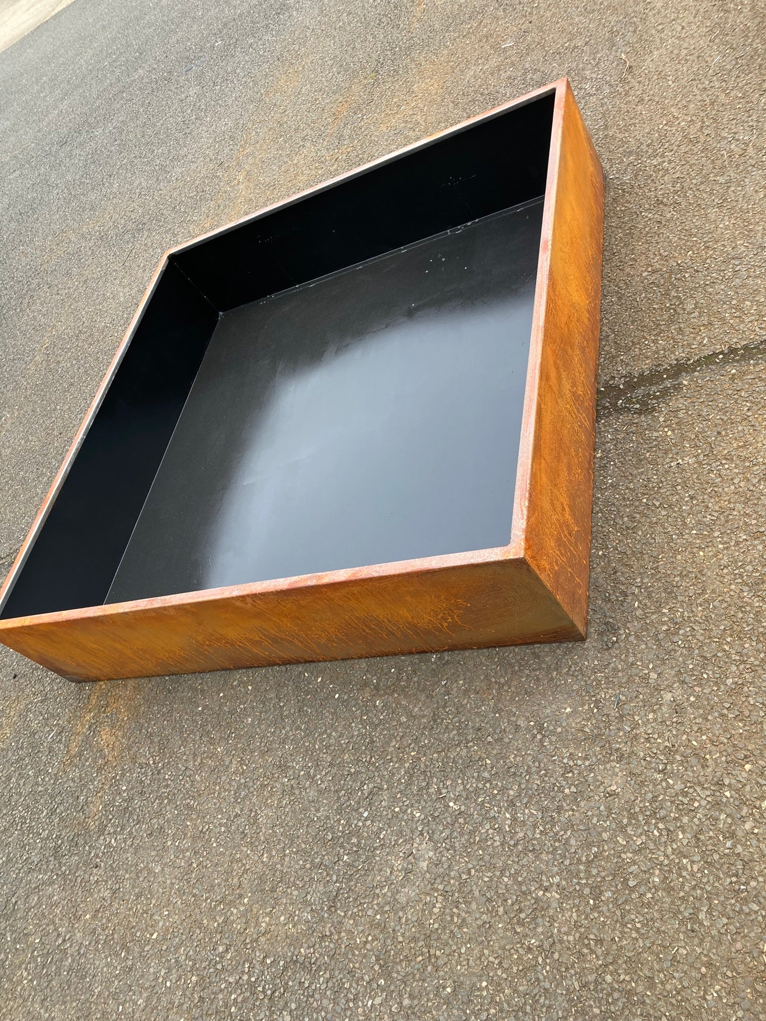 All Corten ponds are painted/sealed with a black pond safe paint.