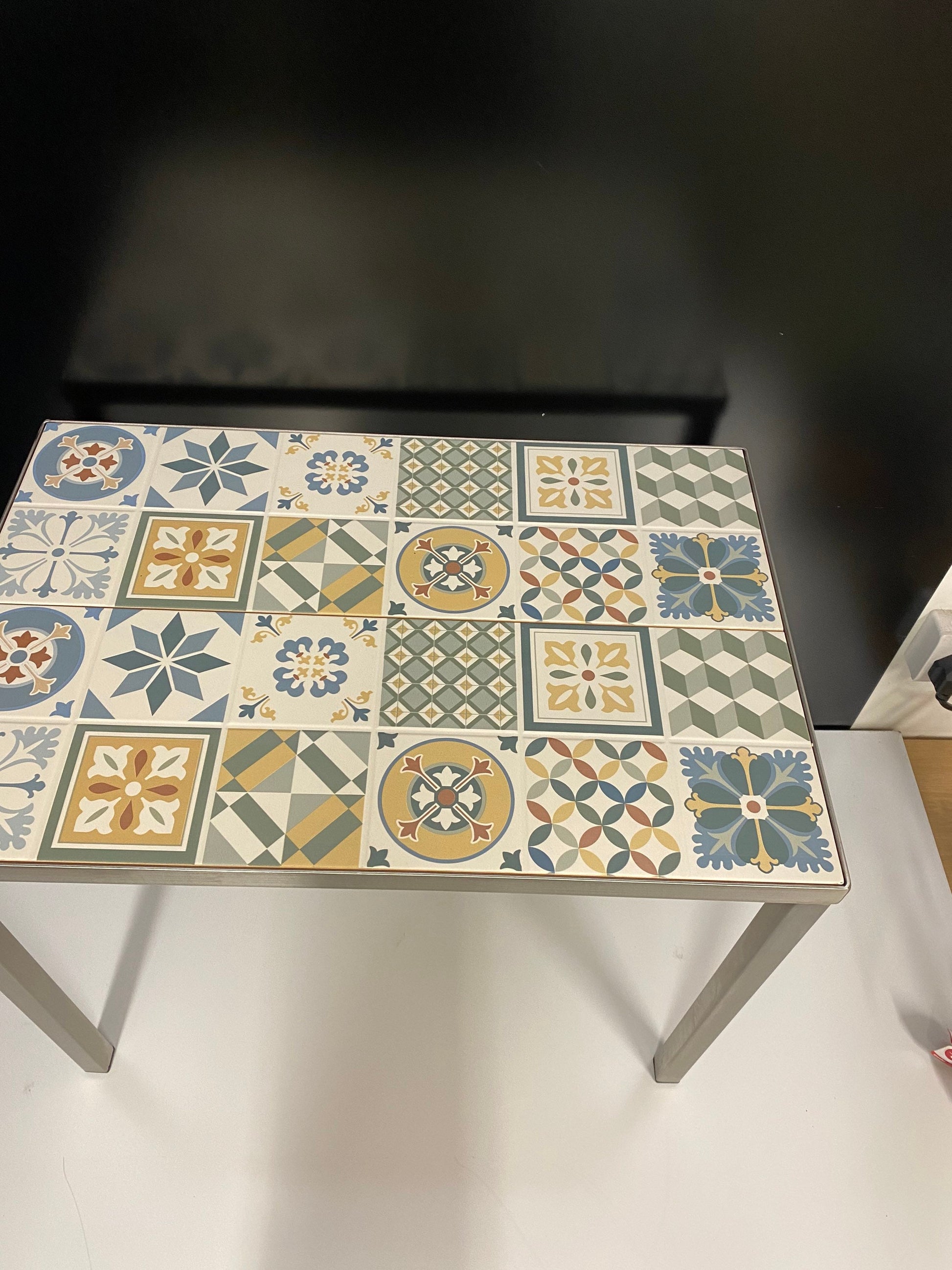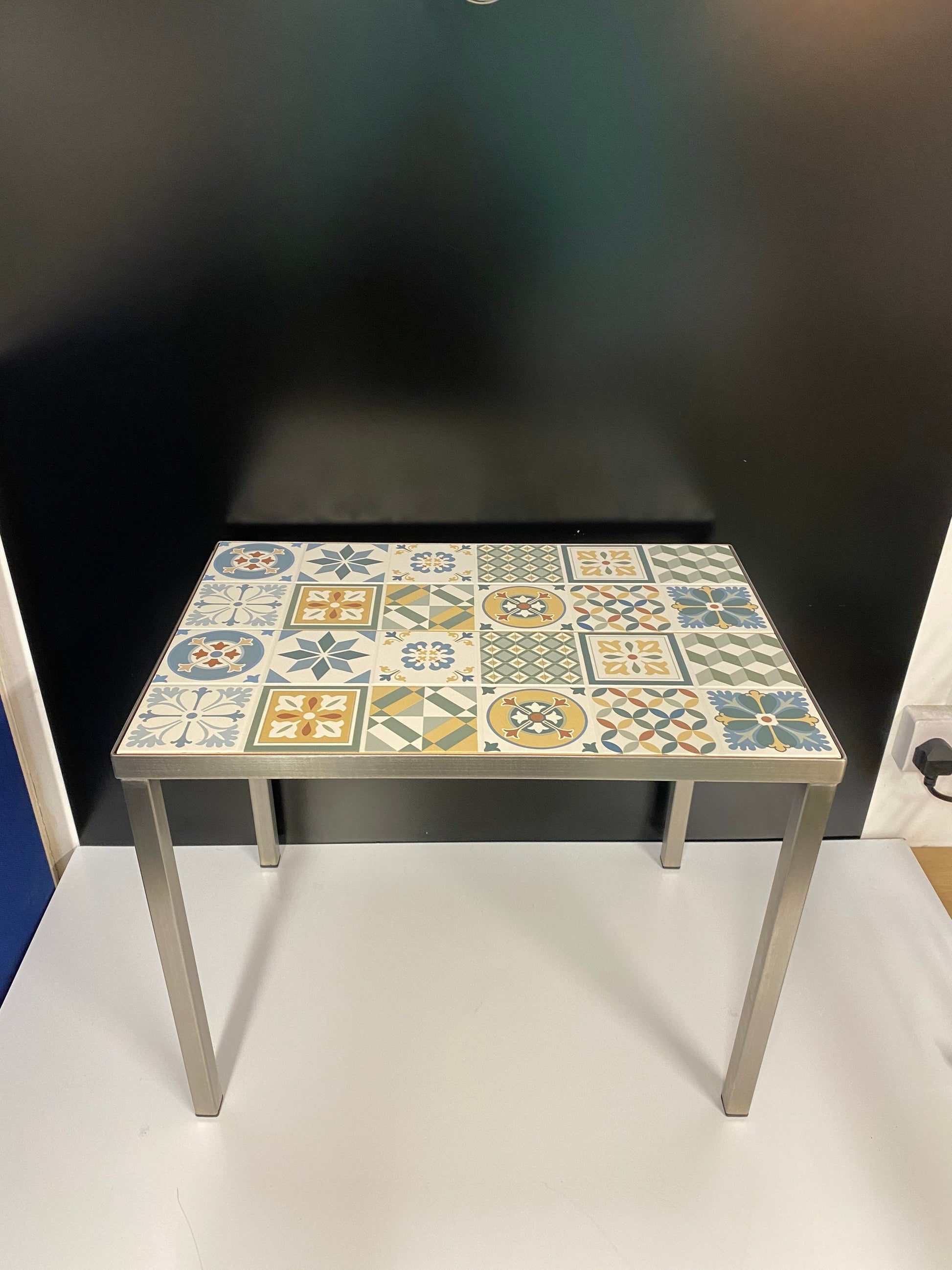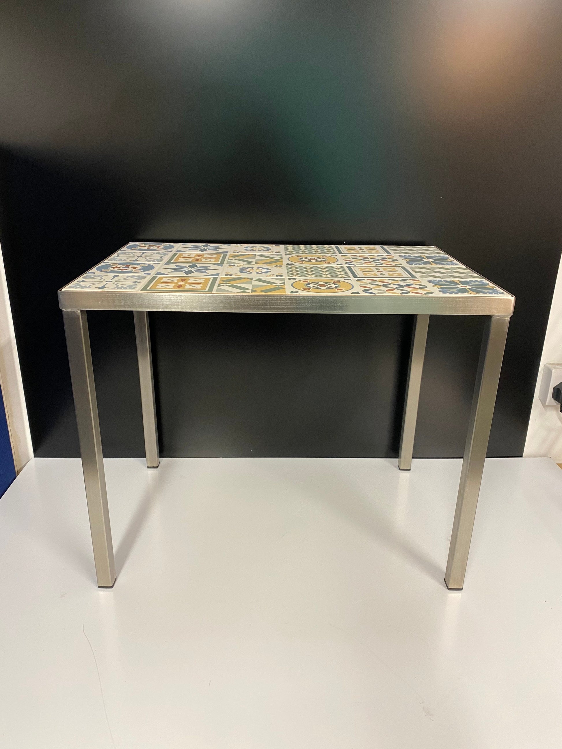 Stainless Steel Framed Drinks Table with Ceramic Tiled Top
